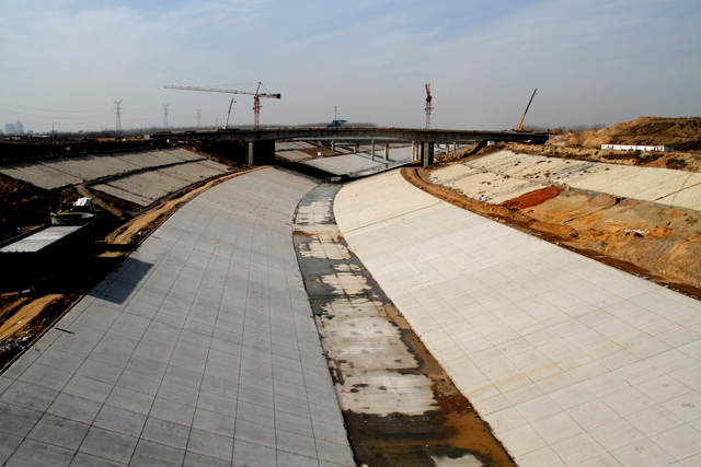 采用復(fù)合土工膜進(jìn)行渠道防滲的優(yōu)點(diǎn)是很明顯的,土工膜的性能發(fā)揮更好,可以有效防止雜草穿透土工膜,以免引起危害。對(duì)于膜結(jié)構(gòu)鋪設(shè)渠道,將渠底找平壓實(shí)并刷粘土漿處理,方便接觸面結(jié)合。 鋪好膜后,應(yīng)鋪薄層細(xì)土,并加混凝土蓋板。