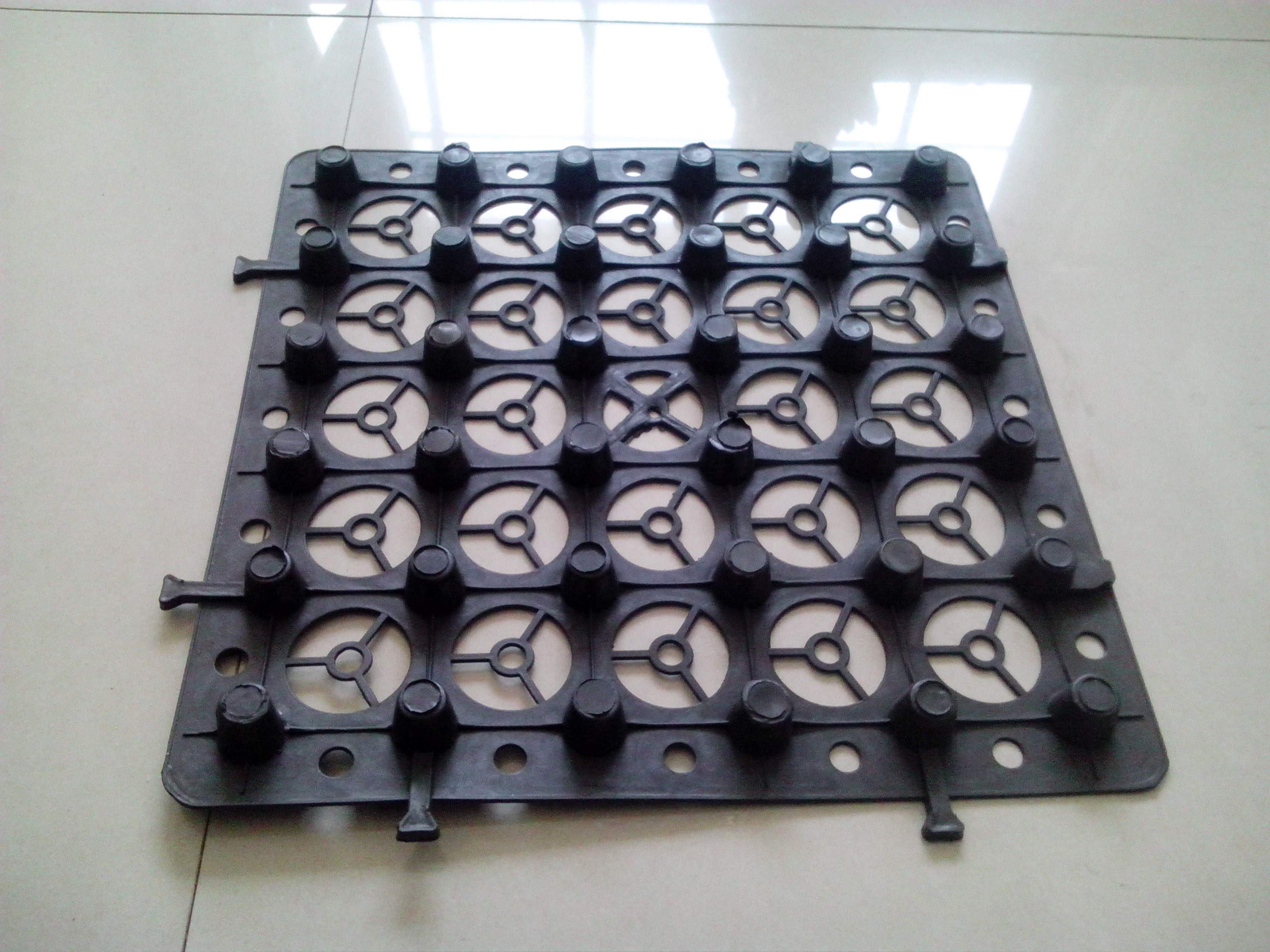 1) 材料本身的多凸點設計可保證積水的多向流動,具有強排水功能;